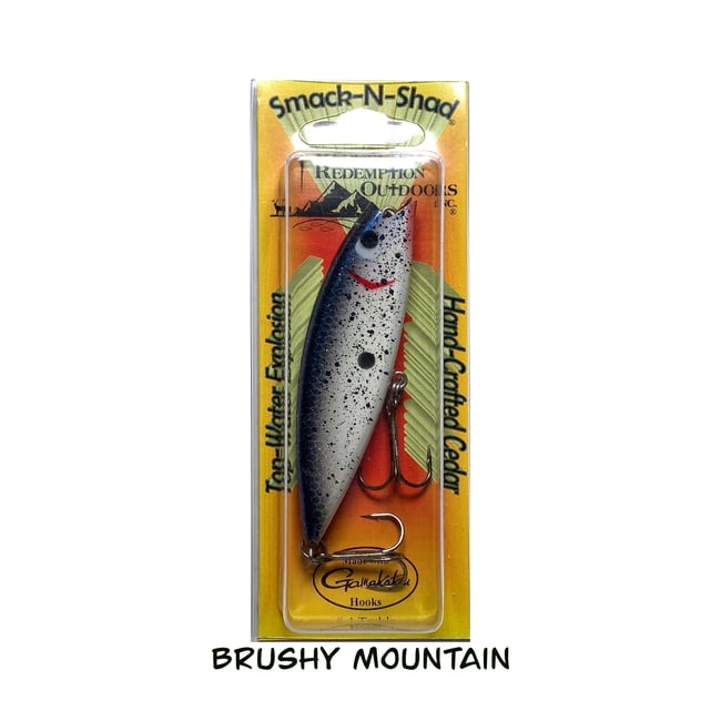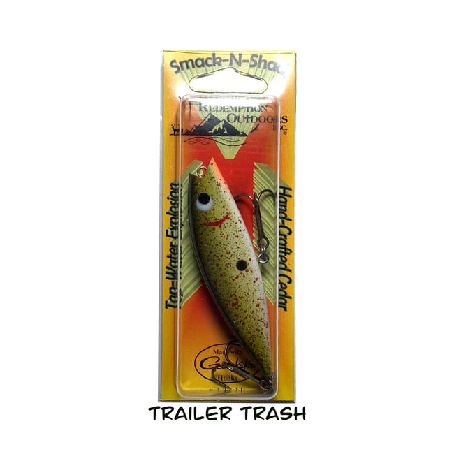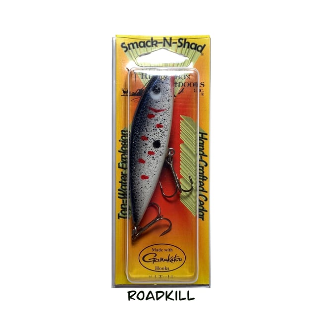 Custom built from super buoyant cedar wood, with reinforced stainless hardware this bait casts like a bullet! Based on your rod action it will pop, spit, roll, chug, dart, dive, wobble, and walk the dog--there really is no wrong way to fish it. Over 20 years ago, Ferlin Wynatch of Tennessee wanted a bait that he could cast a mile to catch schooling bass. The Smack-N-Shad delivered. This is a must for the collector!